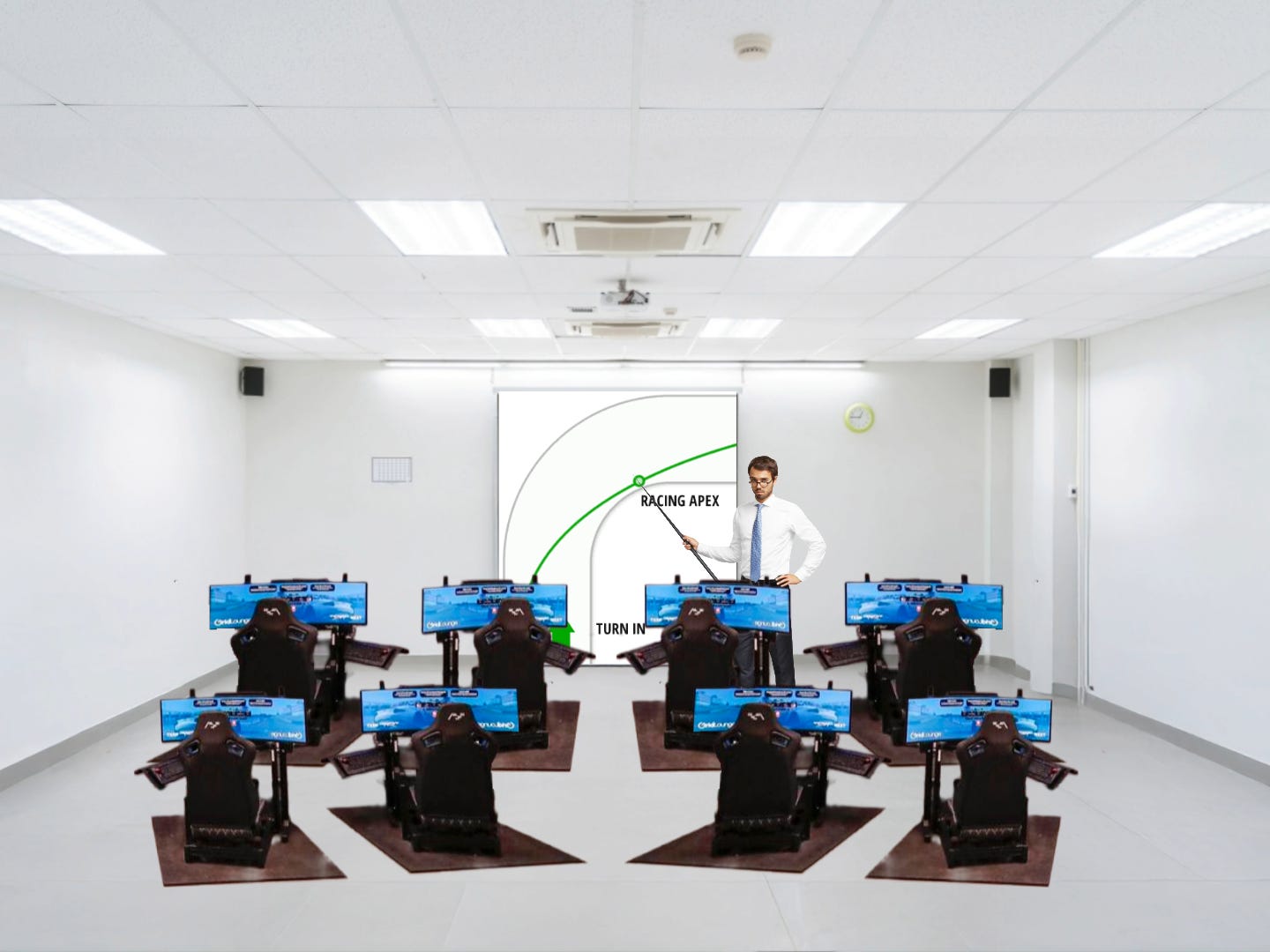 The school’s former computer lab has been converted into a sim racing cafe complete with triple monitors, load-cell pedals, direct-drive wheel bases, and rigs that cost way more than they are paying their teachers. Administrators claim this setup provides “a real education.”